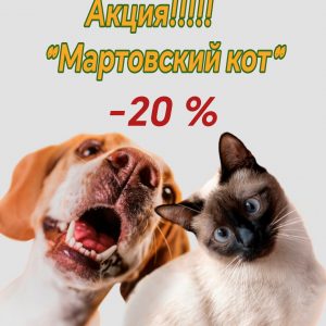 Весна пришла-скидки принесла!!! Акция «Мартовский кот» действует в период с 15.03.26 по 15.04.26 . Распространяется на кошек ,котов, сук и кобелей -20% на весь чек кастрации!!!!!!